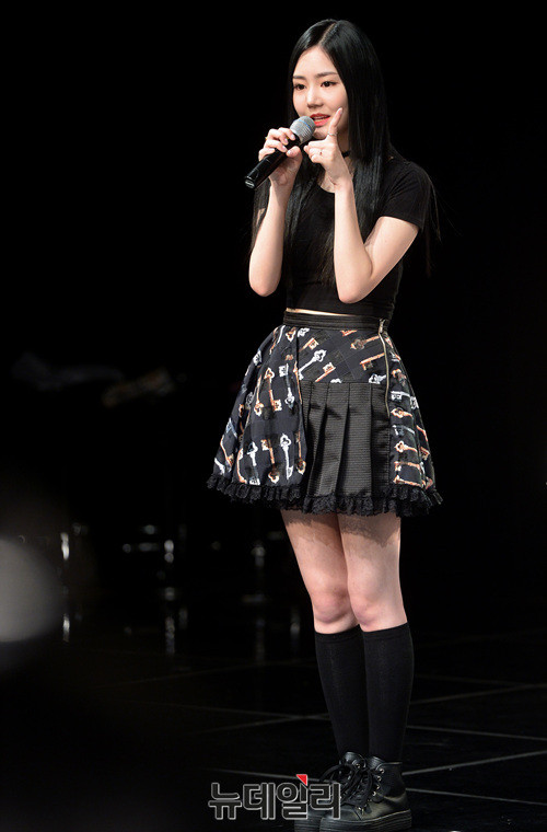 신인그룹 피오피(P.O.P : 해리, 아형, 미소, 설, 연주, 연하)아형이 25일 오후 서울 강남구 일지아트홀에서 열린 데뷔 첫 미니앨범 '퍼즐오브팝(Puzzle Of POP)' 발매 기념 쇼케이스에 참석해 포토타임을 갖고 있다.