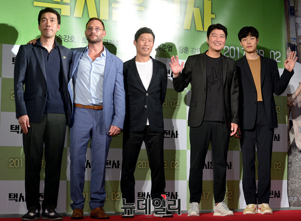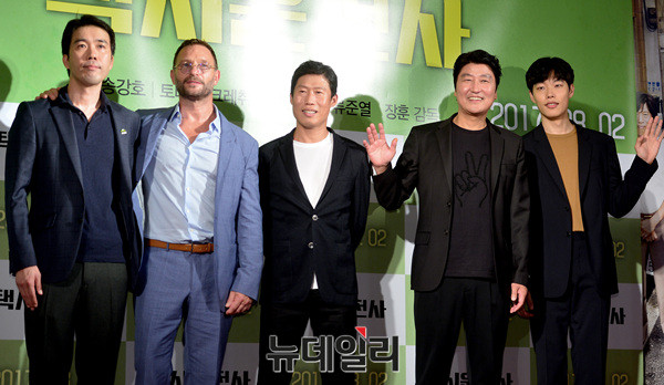 영화 '택시운전사'의 장훈 감독과 배우들(송강호, 류준열, 토마스 크레취만, 유해진)이 25일 오후 서울 용산CGV에서 열린 VIP 시사회에 참석해 포토타임을 갖고 있다.
