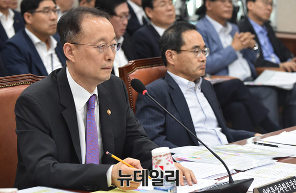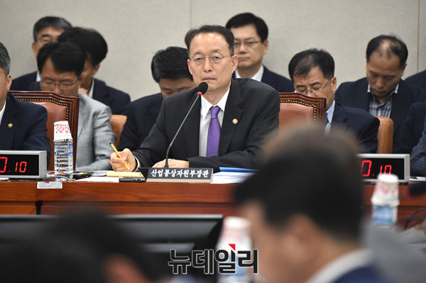 백운규 산업통상자원부 장관이 26일 오전 국회에서 열린 산업통상자원중소벤처기업위원회 전체회의에서 의원들의 질문에 답하고 있다.