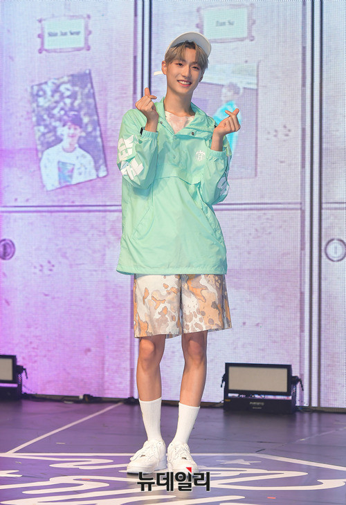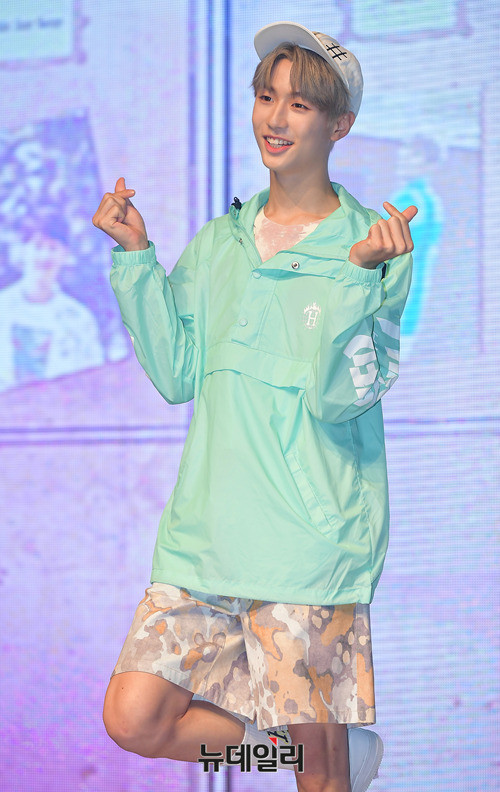 신인 아이돌 그룹 '마이틴(MYTEEN)'의 한슬이 26일 오후 서울 강남구 일지아트홀에서 열린 첫 번째 미니앨범 '마이틴 고' 쇼케이스에서 포토타임을 갖고 있다.