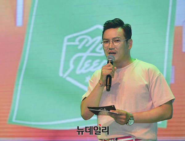 MC딩동이 26일 오후 서울 강남구 일지아트홀에서 열린 신인 보이그룹 마이틴 첫 번째 미니앨범 '마이틴 고' 쇼케이스에서 사회를 보고 있다.