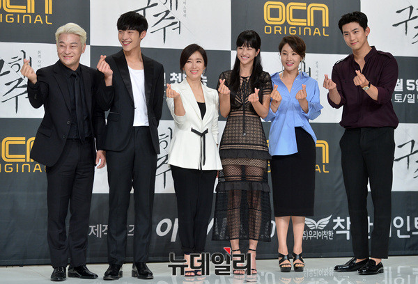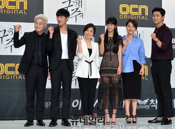 드라마 '구해줘'의 배우들(옥택연, 서예지, 조성하, 우도환, 윤유선, 박지영)이 27일 오후 서울 영등포 타임스퀘어에서 열린 제작발표회에 참석해 포토타임을 갖고있다.