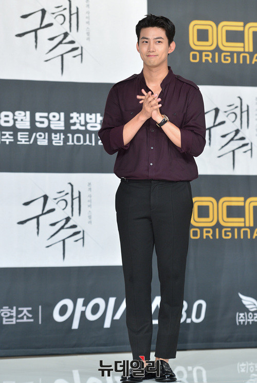 배우 옥택연이 27일 오후 서울 영등포 타임스퀘어에서 열린 제작발표회에 참석해 포토타임을 갖고있다. 옥택연은 사이비 종교에 빠진 첫사랑을 구하기 위해 고군분투하는 한상환 역을 맡았다.
