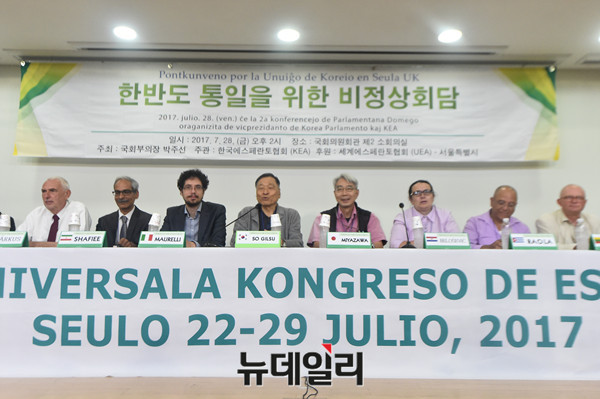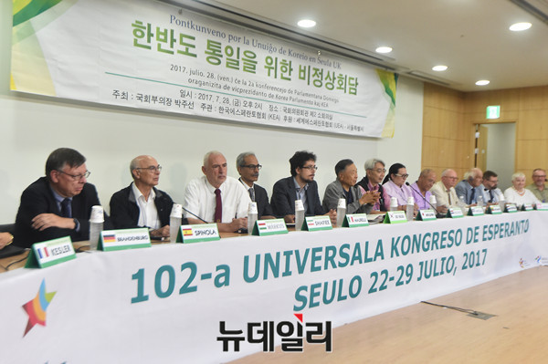 세계에스페란토대회 서울 개최 기념 토론회 '한반도 통일을 위한 비정상회담'이 28일 오후 국회 의원회관에서 개최되고 있다.