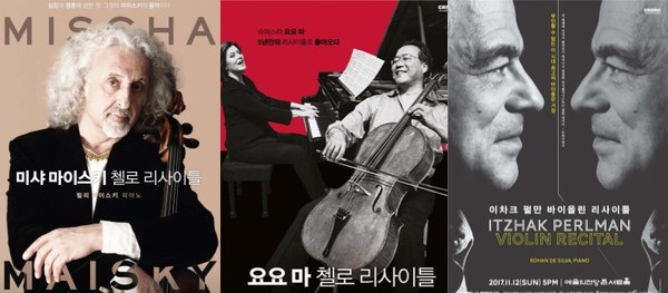 9월 12일 미샤 마이스키(첼로), 10월 12일 요요 마(첼로), 11월 12일에는 이차크 펄만(바이올린)이 차례로 내한해 예술의전당 콘서트홀에서 리사이틀을 연다.