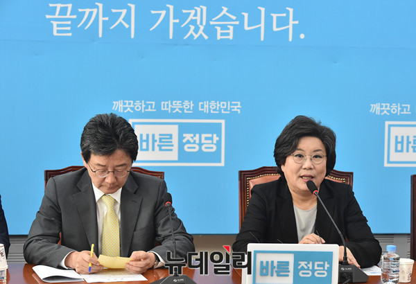 바른정당 이혜훈 대표가 2일 오후 국회에서 열린 북한 ICBM급 미사일실험발사 등 국방부 현안 보고에 앞서 발언을 하고 있다.