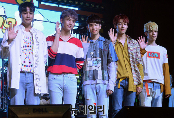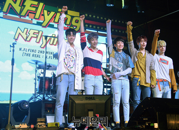 그룹 엔플라잉(N.Flying : 이승협, 권광진, 차훈, 김재현, 유회승)이 2일 오후 서울 예스24 무브홀에서 열린 두 번째 미니앨범 '더리얼 : 엔플라잉(THE REAL : N.Flying)' 발매 기념 쇼케이스에 참석해 포토타임을 갖고 있다. 이번 앨범에는 엠넷 '프로듀스101 시즌2'에 출연한 유회승이 합류했다.