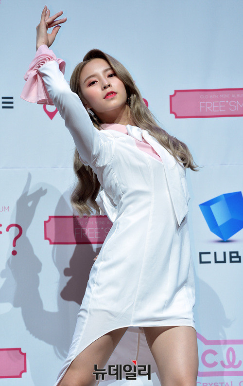 그룹 '씨엘씨(CLC : 오승희, 최유진, 장예은, 엘키, 장승연, SORN, 권은빈)' 엘키가 3일 오후 서울 광진구 예스24라이브홀에서 열린 여섯 번째 미니앨범 '프리즘(FREE'SM)' 발매 기념 쇼케이스에 참석해 포즈를 취하고 있다.
