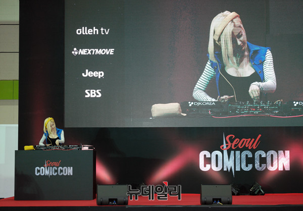 DJ소다가 4일 오후 서울 강남구 코엑스 Hall C에서 열린 '코믹콘 서울 2017' 개막식에 참석해 화려한 무대를 선보이고 있다.