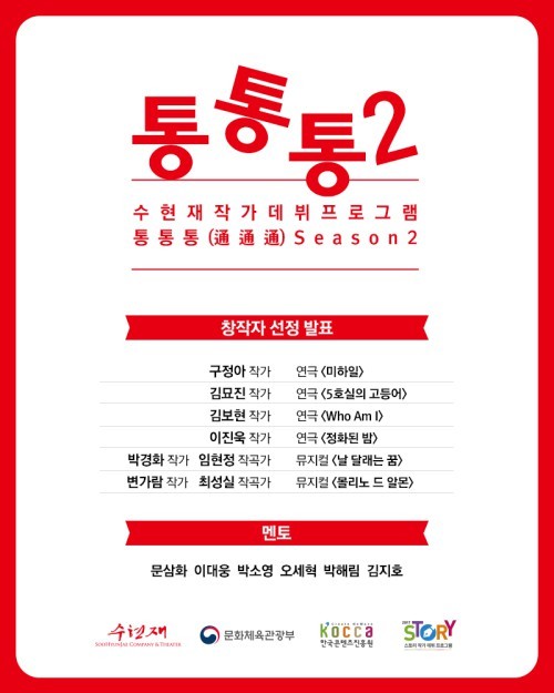 '통통통 시즌2'는 플랫폼, 창작진, 관객이 소통해 함께 작품을 개발해 나가는 창작 지원 프로그램이다. 수현재컴퍼니는 한국콘텐츠진흥원이 주최한 '2017 스토리 작가 데뷔 프로그램 운영 지원사업'에 플랫폼 기관으로 선정됐다.