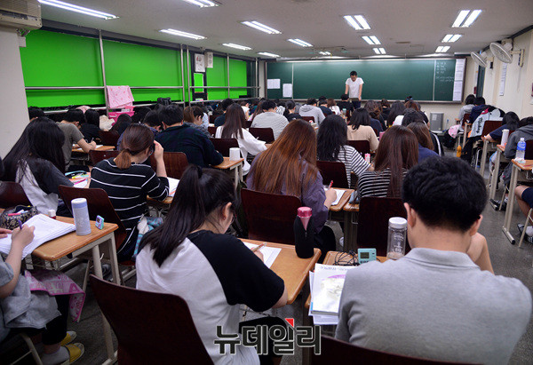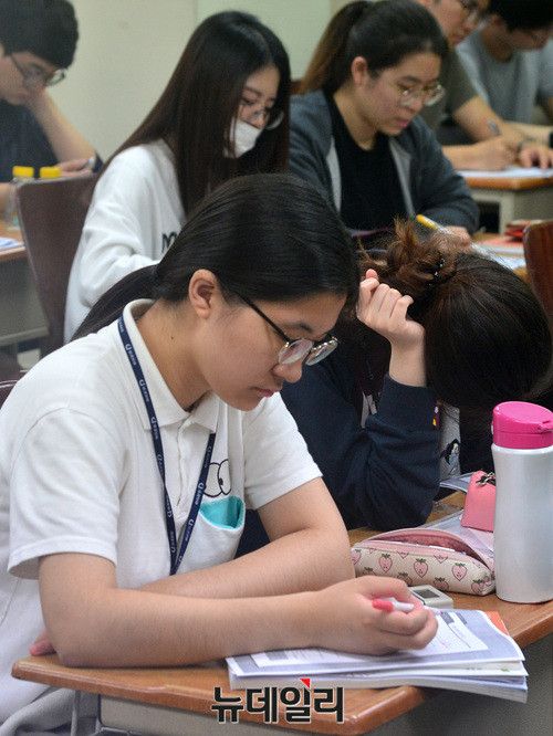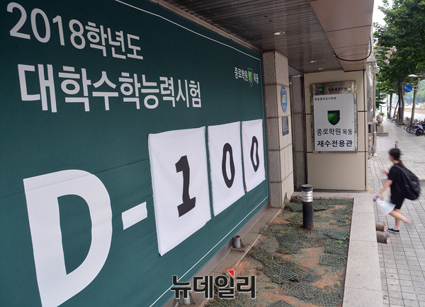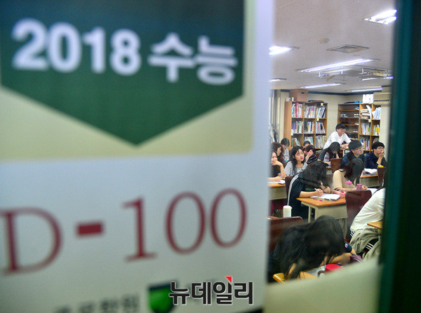 수험생들이 2018학년도 대학수학능력시험을 100일 앞둔 8일 오전 서울 양천구 종로학원에서 수업에 집중하고 있다.