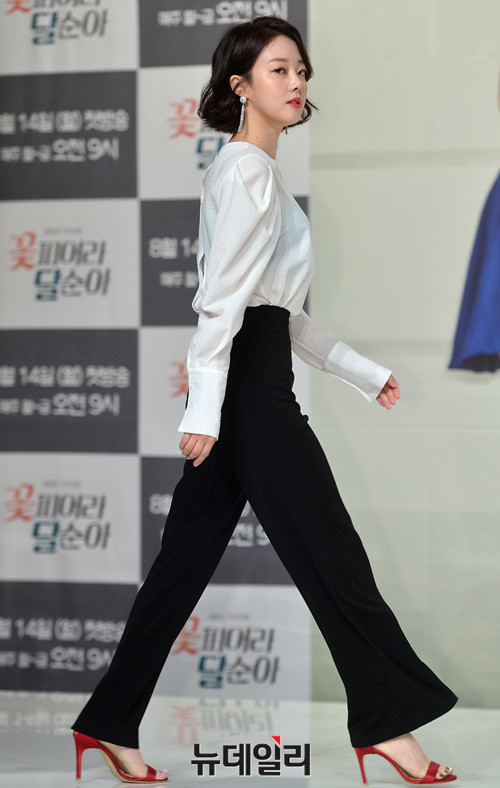 배우 윤다영이 8일 오후 서울 영등포 타임스퀘어에서 열린 드라마 '꽃피어라달순아' 제작발표회에 참석해 포토타임을 갖고있다. 윤다영은 어려서부터 가난이 지긋지긋하게 싫어서 늘 탈출을 꿈꿔온 인물 한홍주 역을 맡았다.