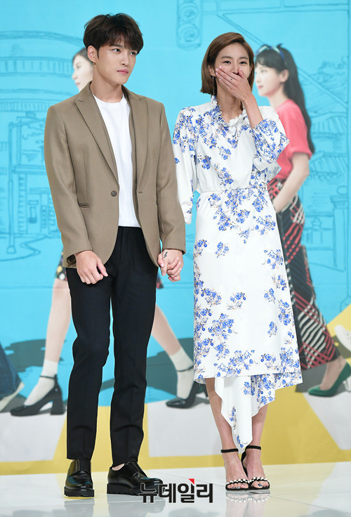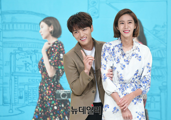 배우 김재중과 유이가 7일 오후 서울 영등포구 타임스퀘어 아모리스홀에서 열린 수목 드라마 '맨홀:이상한 나라의 필(연출 박만영 유영은, 극본 이재곤)' 제작보고회에서 포토타임을 갖고 있다.