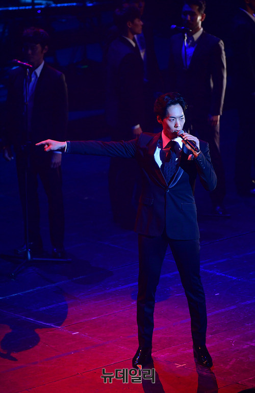 배우 카이가 7일 오후 서울 용산구 블루스퀘어에서 열린 뮤지컬 벤허 쇼케이스에서 극중 곡 '희망은 어디에'를 열창하고 있다. 뮤지컬 벤허는 오는 24일부터 10월 29일까지 충무아트센터 대극장에서 공연 된다.