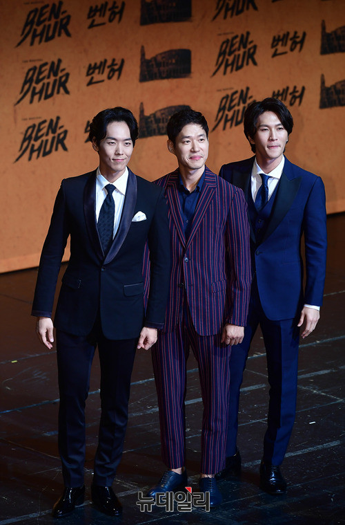 벤허 역을 맡은 카이, 유준상, 박은태(왼쪽부터)가 7일 오후 서울 용산구 블루스퀘어에서 열린 뮤지컬 벤허 쇼케이스에서 포토타임을 갖고 있다. 뮤지컬 벤허는 오는 24일부터 10월 29일까지 충무아트센터 대극장에서 공연 된다.
