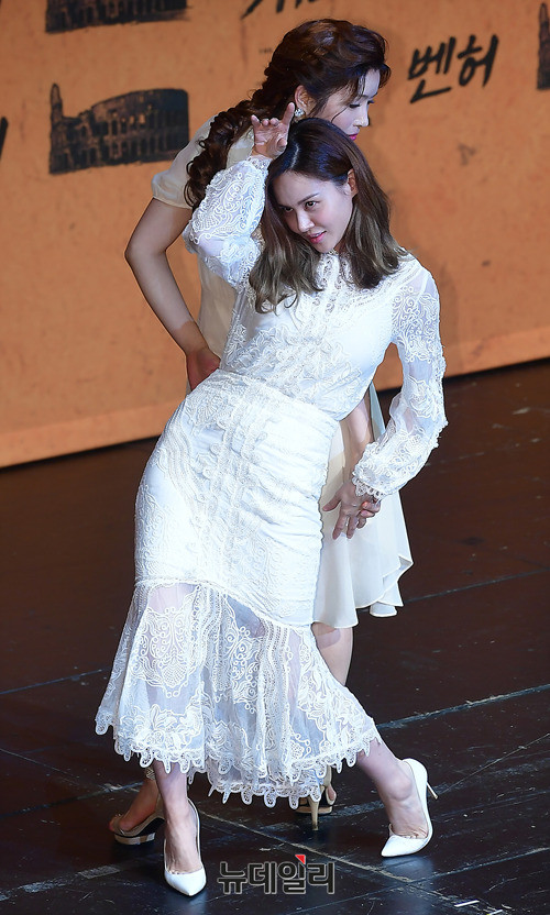 에스더 역을 맡은 배우 아이비, 안시하가 7일 오후 서울 용산구 블루스퀘어에서 열린 뮤지컬 벤허 쇼케이스에서 포토타임을 갖고 있다. 뮤지컬 벤허는 오는 24일부터 10월 29일까지 충무아트센터 대극장에서 공연 된다.