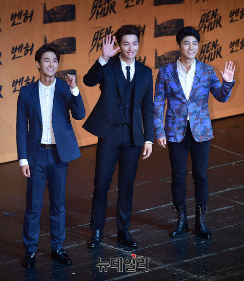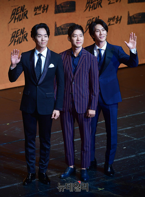 뮤지컬 벤허의 주요 출연진들이 7일 오후 서울 용산구 블루스퀘어에서 열린 뮤지컬 벤허 쇼케이스에서 포토타임을 갖고 있다. 뮤지컬 벤허는 오는 24일부터 10월 29일까지 충무아트센터 대극장에서 공연 된다.
