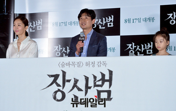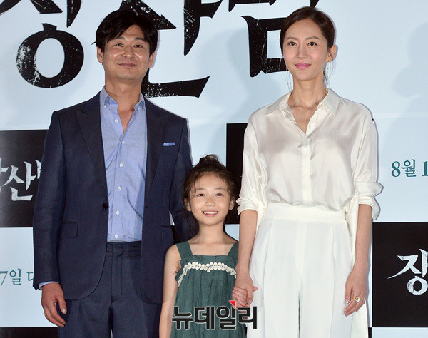 영화 '장산범(감독 허정)'의 배우 염정아, 박혁권, 신린아가 8일 오후 서울 용산CGV에서 열린 언론시사회에 참석해 포토타임을 갖고 있다.