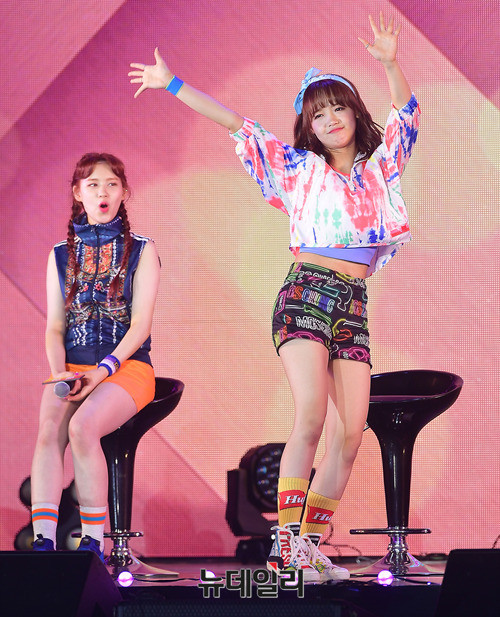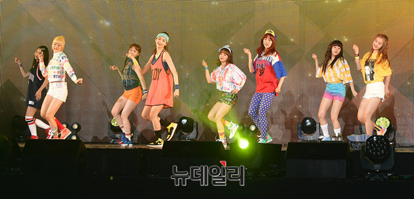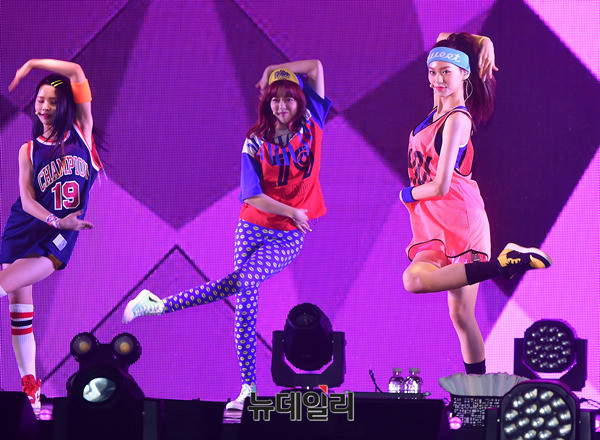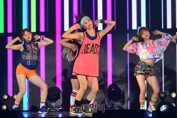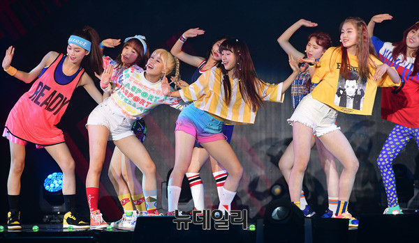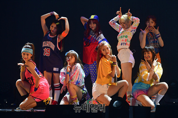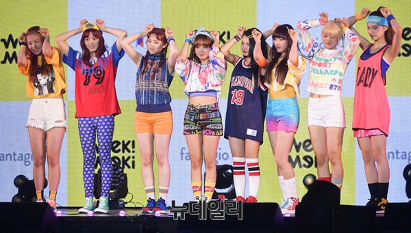 신인 걸그룹 '위키미키(Weki Meki)'가 8일 오후 서울 중구 장충체육관에서 열린 데뷔 앨범 '위미(WEME)' 쇼케이스에서 포토타임을 갖고 있다.