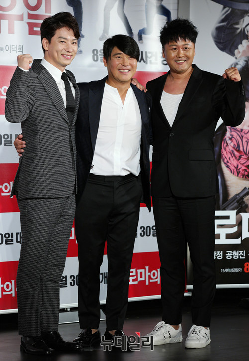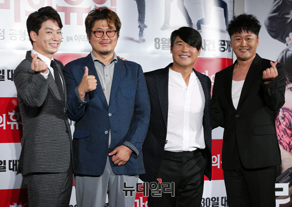배우 정상훈, 이덕희 감독, 임창정, 공형진(왼쪽부터)이 9일 오전 서울 중구 메가박스동대문에서 열린 영화 '로마의휴일' 제작보고회에 참석해 포토타임을 갖고 있다.