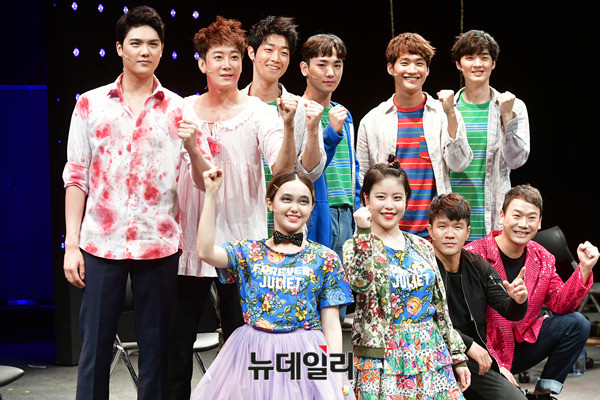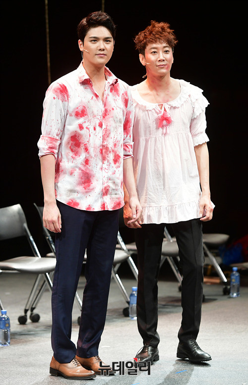 배우 윤소호, 허규(왼쪽부터)가 9일 오후 서울 중구 충무아트센터 중극장블랙에서 열린 연극 '지구를 지켜라' 프레스콜에서 포토타임을 갖고 있다. 윤소호와 허규는 병구가 외계인이라고 확신하는 만식 역을 맡았다. 2016년 초연 된 연극 '지구를 지켜라'는 오는 10일부터 10월 22일까지 충무아트센터 중극장블랙에서 공연된다.