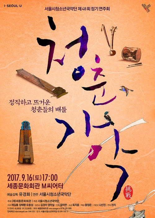 세종문화회관 서울시청소년국악단(단장 유경화)은 9월 16일 '청춘가악'을 세종M씨어터 무대에 올린다.