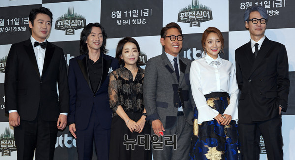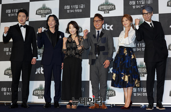 성악가 손혜수, 뮤지컬배우 마이클리, 음악감독 김문정, 가수 윤종신, 바다, 프로듀서 윤상(왼쪽부터)이 10일 오후 서울 마포구 스탠포드호텔 그랜드볼룸에서 열린 JTBC 예능 프로그램 '팬텀싱어2' 제작발표회에 참석해 포토타임을 갖고 있다.