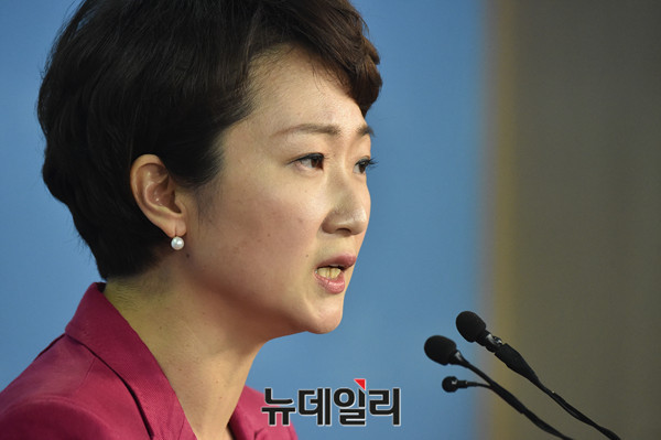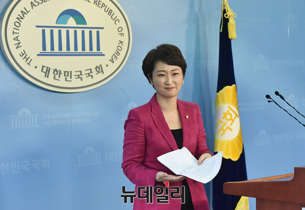 국민의당 이언주 의원이 11일 오후 국회 정론관에서 국민의당 8.27 전당대회 당대표 출마선언을 하고 있다.