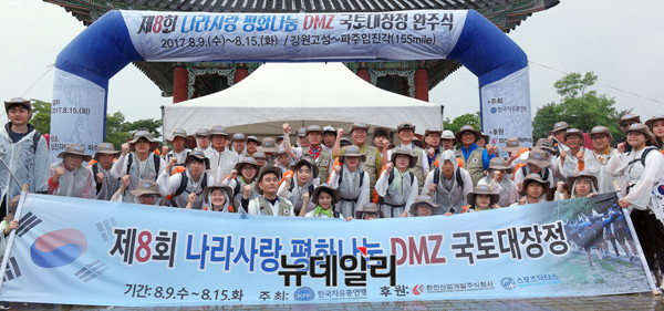 이번 '제8회 나라사랑 평화나눔 DMZ 국토대장정'은 전국에서 선발된 대학생 100명이 강원도 고성에서 출발해 인제-양구-화천-철원-연천을 거쳐 파주 임진각까지 6박 7일간 총 250km를 도보로 횡단했다.