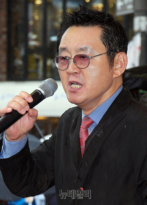 윤창중 전 청와대 대변인이 15일 오후 서울 종로구 마로니에공원 인근에서 열린 '8·15구국국민결의대회'에 참석해 발언하고 있다.