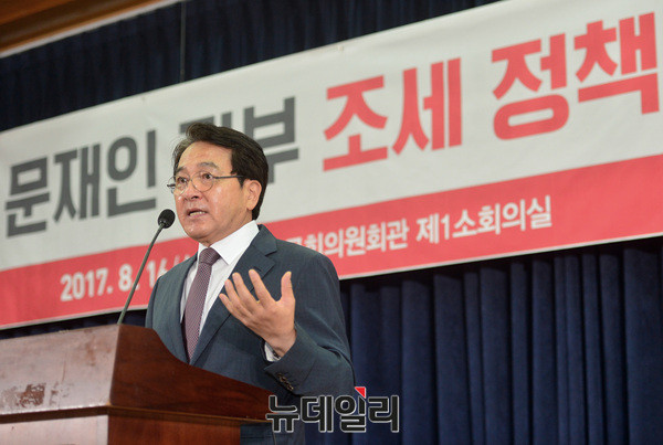 이날 심 부의장은 축사에서 문재인 대통령의 조세정책과 관련해 "정부는 기업에 대해 법인세를 많이 내고 고용을 늘리라고 하면서도 최저임금을 올리고 해외로도 나가지 말라고 한다"고 말했다.