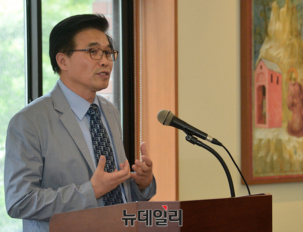 김권정 대한민국 역사 박물관 학예사(경희대 후마니타스 칼리지 교수)가 16일 오후 서울 중구 정동 프란치스코 교육회관에서 열린 제78차 이승만포럼에 발표자로 나서 '해방 후 정치사회동향과 기독교세력의 역할'을 주제로 발표하고 있다.
