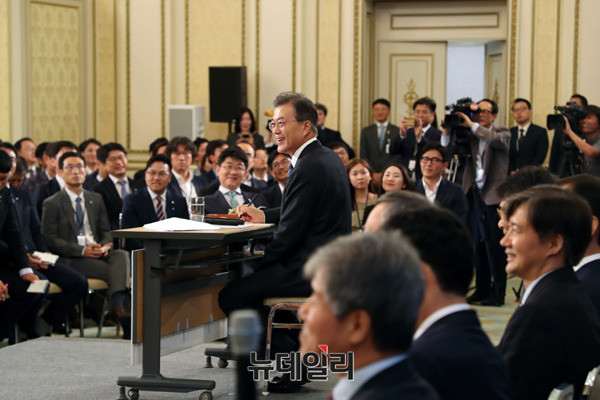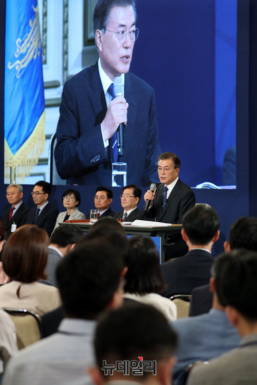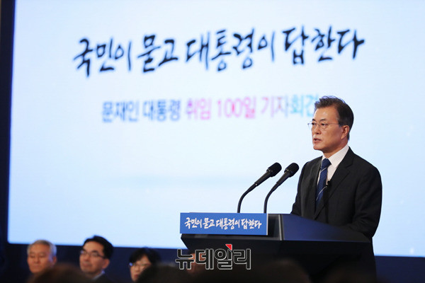 문재인 대통령이 17일 오전 청와대에서 취임 100일 기자회견에서 모두 발언을 하고 있다. (사진=청와대)