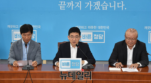 김세연 바른정당 정책위의장이 17일 오후 국회에서 살충제 계란 관련 기자회견을 갖고 있다.