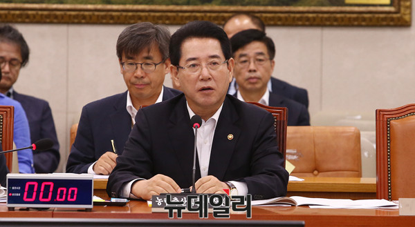 김영록 농림축산식품부 장관이 17일 오후 국회에서 열린 농림축산식품해양수산위원회 전체회의에서 국산 계란 살충제 안전관리대책 관련 현안보고에서 의원들의 질문에 답하고 있다.