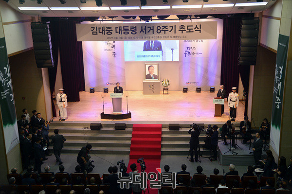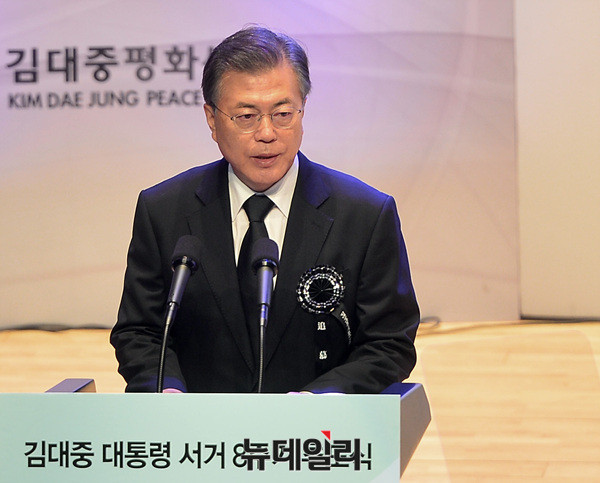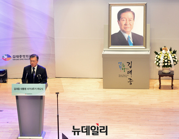 이날 문 대통령은 추도사에서 "아무리 먹구름이 몰려오더라도 한반도 역사에 새겨진 김대중의 길을 따라 남북이 다시 만나고 희망이 열릴 것이라고 믿는다"고 말했다.