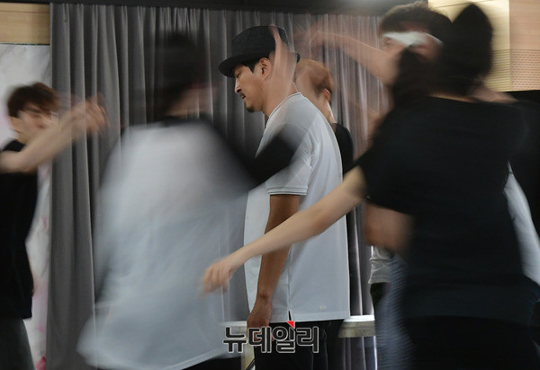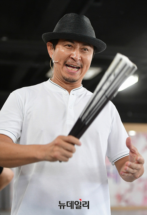 배우 서범석이 21일 오후 서울 강남구 BBCH아트홀 리허설룸에서 연습실 공개 행사에서 뮤지컬 서편제 중 하이라이트 장면을 시연하고 있다. 서범석은 유봉 역을 맡았다. 2014년에 이어 3년만에 무대에 오르는 창작뮤지컬 서편제는 오는 30일부터 11월 5일까지 광림아트센터 BBCH에서 공연된다.