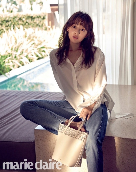 다른 사진에선 심플한 화이트 블라우스에 데님팬츠를 매치, 자연스러운 아름다움을 선보인다. 로맨틱한 자수 원피스에 턱을 괴고 있는 사진에서는 그녀만의 사랑스러운 매력이 묻어나기도.