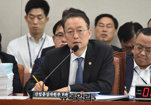 백운규 산업통상자원부 장관이 22일 오전 국회 산업통상자원중소벤처기업위원회 전체회의에서 참석해 의원들의 질문에 답하고 있다.