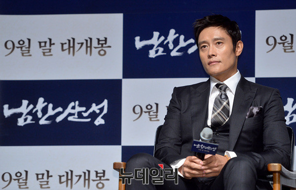 배우 이병헌이 23일 오전 압구정CGV에서 열린 영화 '남한산성(감독 황동혁)' 제작보고회에 참석해 질문에 답하고 있다. 이병헌은 전쟁중인 청과 화천을 주장하는 충신 이조판서 최명길 역을 맡았다.