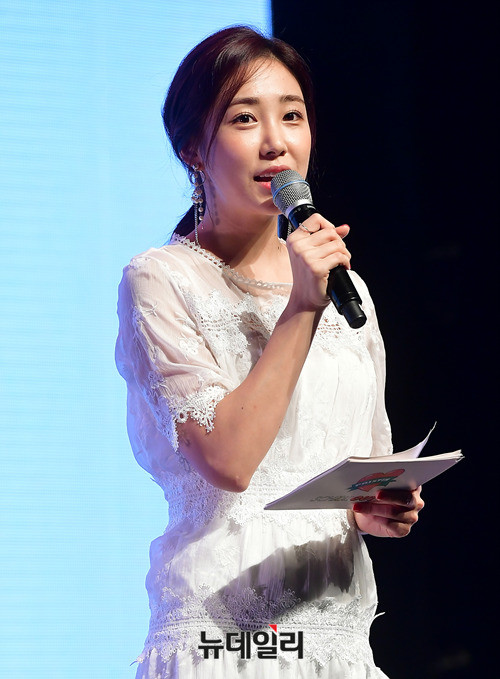 최희 아나운서가 23일 오후 서울 서초구 흰물결아트센터에서 열린 프리스틴 2번째 미니앨범 'SCHXXL OUT(스쿨아웃)' 쇼케이스에서 사회를 보고 있다. 프리스틴의 이번 앨범 'SCHXXL OUT'는 캐릭터를 잘 표현한 타이틀곡 'WE LIKE(위 라이크)'를 비롯해 총 5트랙을 담았다.