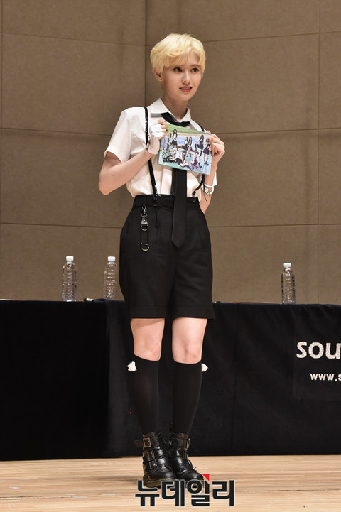 걸그룹 다이아 세 번째 미니앨범 '러브 제너레이션'(LOVE GENERATION) 기념 팬사인회가 23일 오후 서울 양천구 목동 목동청소년수련관에서 열린 가운데 예빈이 사인을 들고 포토타임을 갖고 있다.