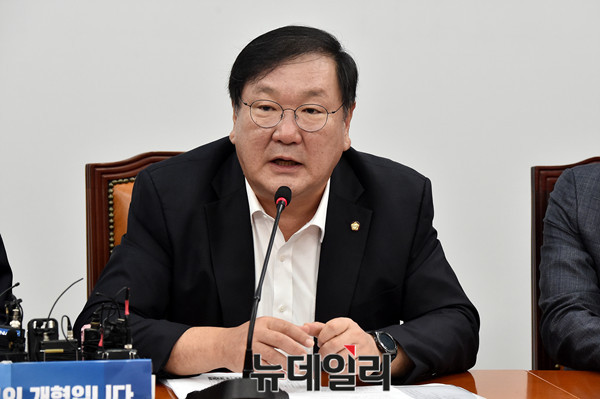 김태년 더불어민주당 정책위의장이 24일 오전 국회에서 열린 정책조정회의에서 모두발언을 하고 있다.