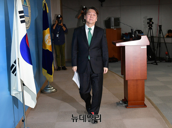 안철수 국민의당 당대표 후보가 25일 오전 국회 기자회견장에서 전당대회 관련 회견문 발표후 회견장을 나서고 있다. 국민의당 전당대회는 오는 27일 국회의원회관 대회의실에서 개최 된다.