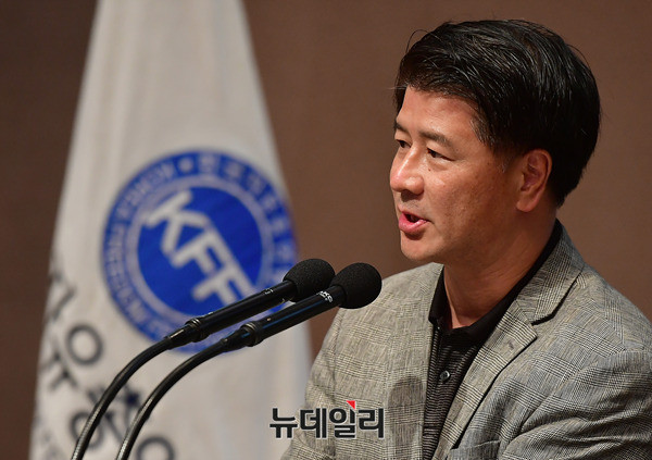 임석준 한국세계지역학회장이 25일 서울 중구 한국프레스센터 국제회의장에서 열린 학술회의에서 개회사를 하고 있다.