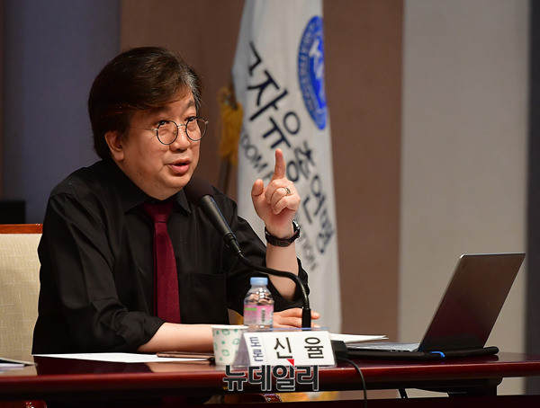 신율 명지대 교수가 25일 서울 중구 한국프레스센터 국제회의장에서 열린 '북한 인권문제의 이해와 개선책' 학술회의에서 토론자로 나서 발언하고 있다.