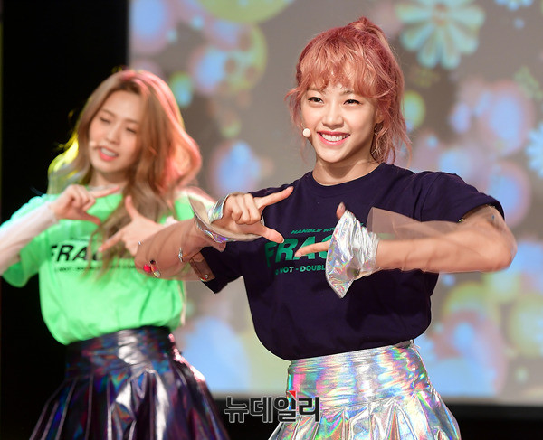 신인 걸그룹 '굿데이(Good Day)' 유닛 굿모닝이 29일 오후 서울 강남구 일지아트홀에서 열린 데뷔 앨범 'All Day Good Day(올데이굿데이)' 쇼케이스에서 수록곡을 선보이고 있다.