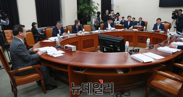서훈 국가정보원장이 29일 오후 국회에서 열린 정보위원회 전체회의에 출석해 시작을 기다리고 있다.