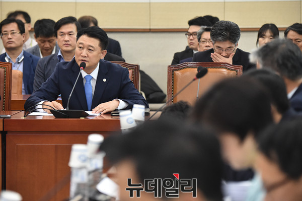 이철성 경찰청장이 29일 국회에 열린 법제사법위원회 전체회의에서 의원들의 질의에 답변하고 있다.