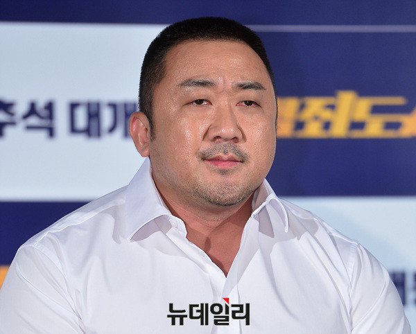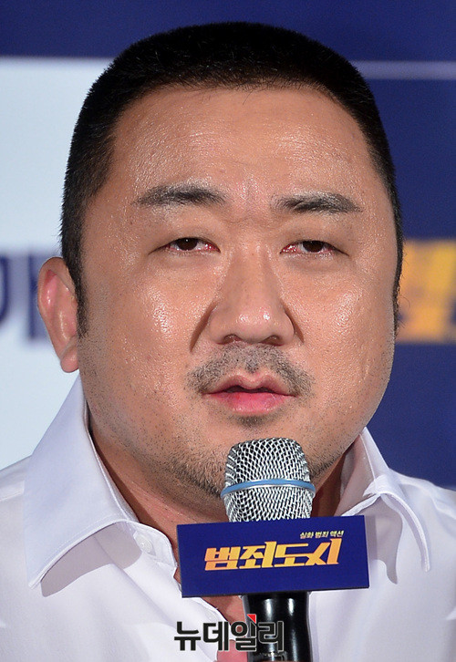 배우 마동석이 30일 오전 동대문 메가박스에서 열린 영화 '범죄도시(감독 강윤성)' 제작보고회에 참석해 질문에 답하고 있다. 마동석은 주먹 한방으로 다 쓰러트리는 강력계 베테랑 형사 마석도 역을 맡았다.